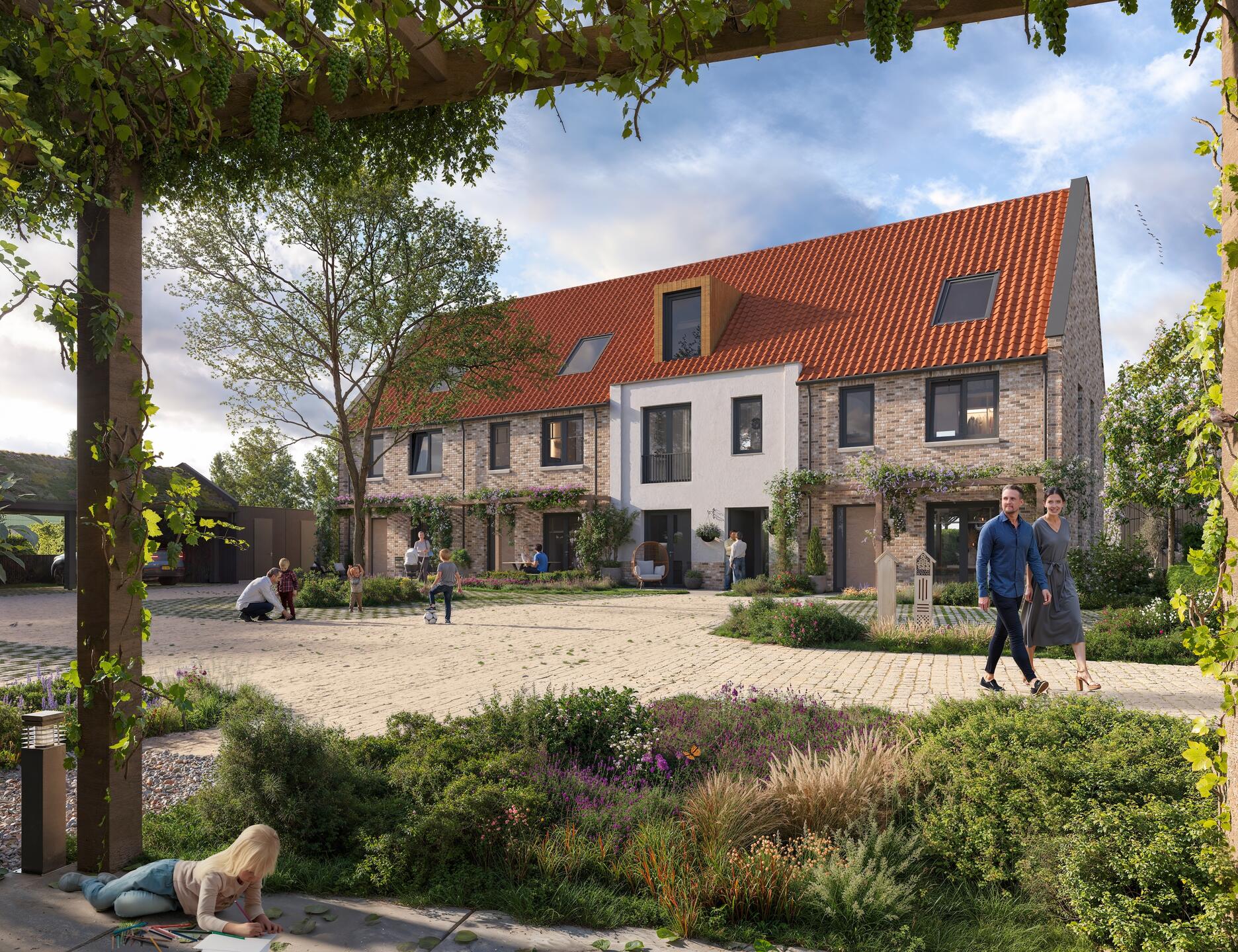 De architectuur van de familiewoningen is eigentijds met subtiele verwijzingen naar het boerenleven dat zich hier eeuwenlang afspeelde. Warme materialen, stijlvolle details en een harmonieus samenspel met het groen zorgen voor een sfeervol totaalbeeld. Elk huis beschikt over een overdekte privé parkeerplaats, en door het autoluwe karakter van het erf geniet je volop van rust en veiligheid.